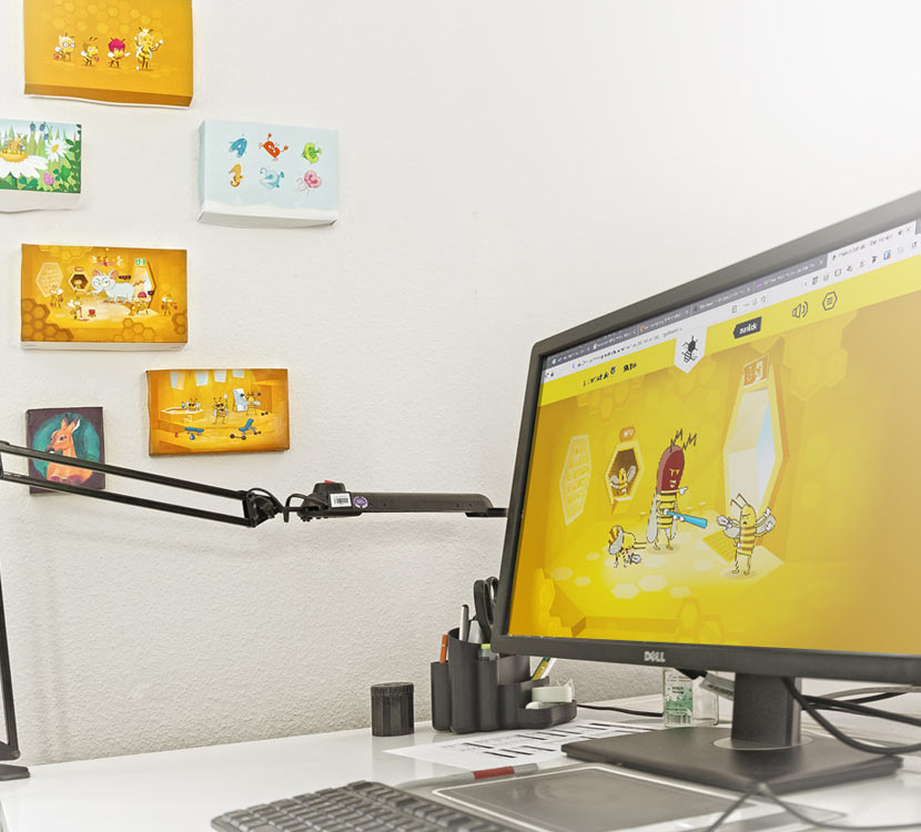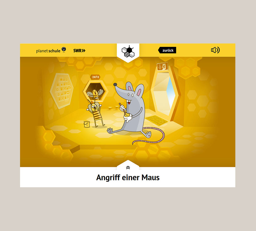 In unserem Projekt „Die Honigbienen“ für die Website „Planet Schule“ des SWR haben wir die Möglichkeiten des SVG-Formats ausgelotet. Das Ergebnis hat uns selbst begeistert. Mit den SVG-Animationen entstanden beinahe Disney-mäßige Zeichentricksequenzen.