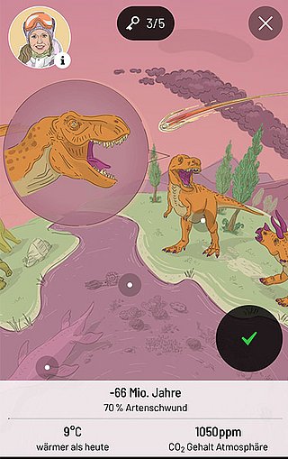 In insgesamt 16 anspruchsvollen Lerngames wurden so verschiedenartige wissenschaftliche Erkenntnisse von den großen Aussterbeereignissen bis hin zur Funktionsweise des Jetstream interaktiv aufbereitet.